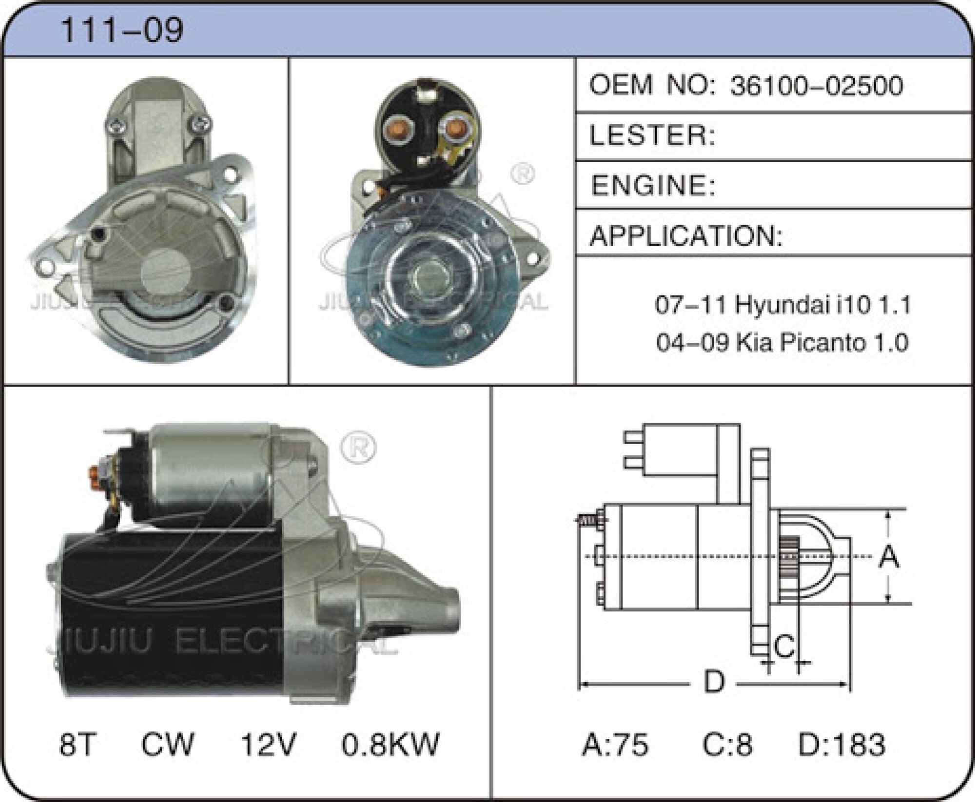 OEM 36100-02500, 0986022601, 438101, 32453N, NQD-0008